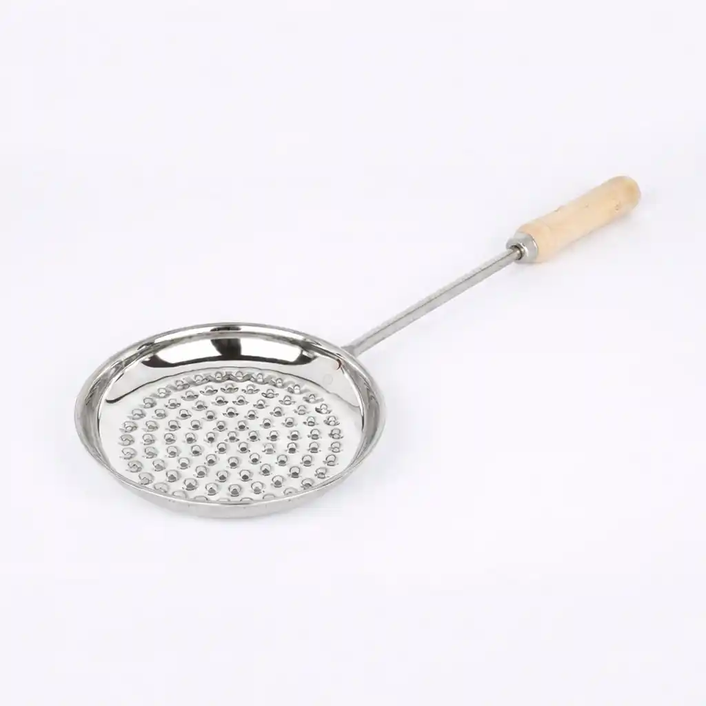 This Boondi Jhara with Wooden Handle features a strong perforated steel plate and a comfortable wooden handle that protects your hands from heat. It is perfect for preparing boondi, frying snacks, and removing food from deep oil easily.