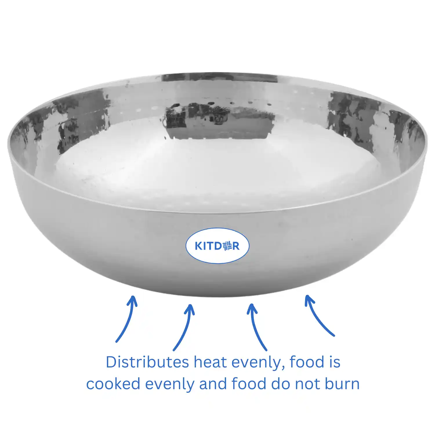 Kitdor’s Heavy Bottom Stainless Steel Kadhai is different from the regular one.  The heavy bottom of this kadhai is a seemingly simple feature that significantly enhances the overall cooking experience-