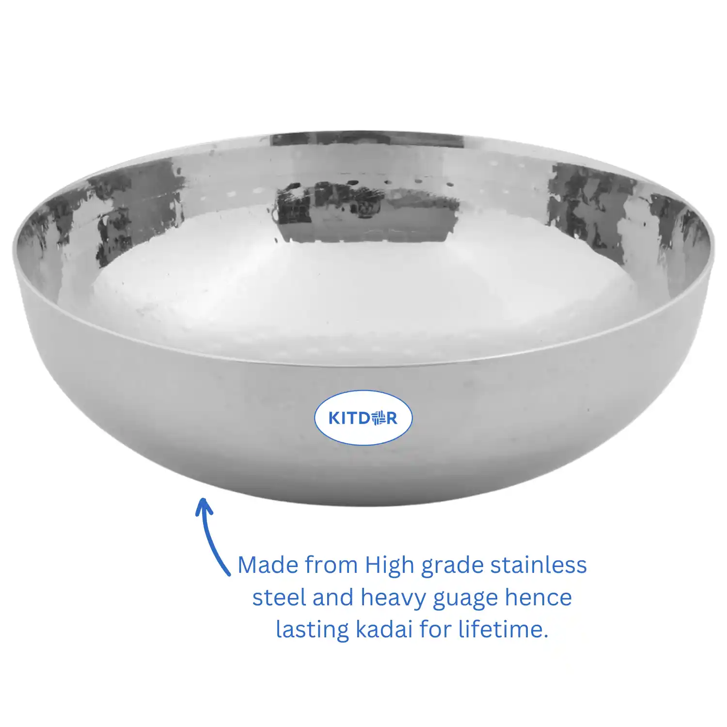 - Different Size Options- At Kitdor, we offer various size options in our heavy-bottom stainless steel kadhai. It comes in 9 size options from 0.5 litres to 7 litres. This makes our products suitable for domestic kitchens as well as for restaurants.