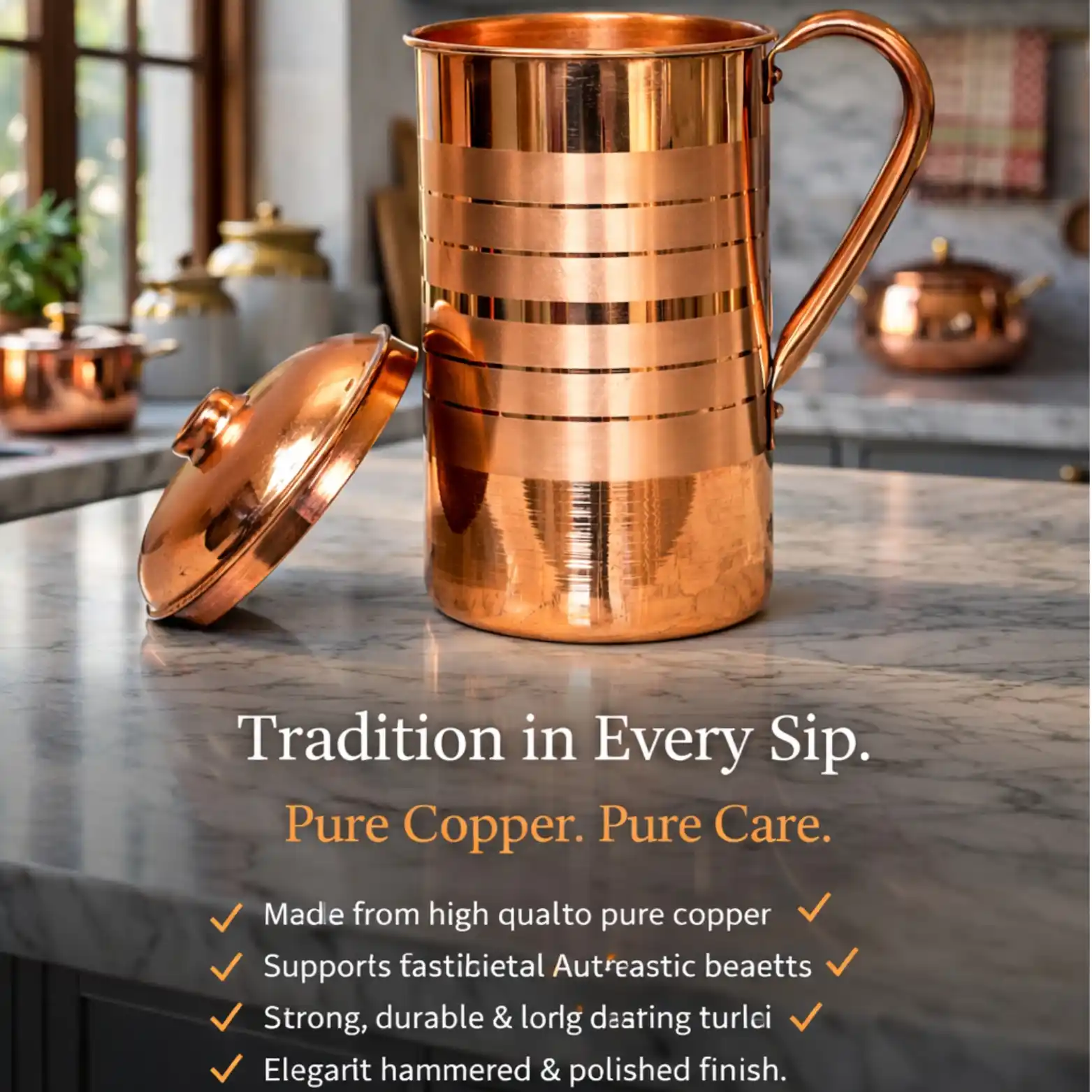 The Kitdor Copper Jug adds an element of elegance to your beverage service, meticulously designed for various occasions. With its sleek design, it offers a stylish presentation for water, juices, and other beverages, becoming an essential addition to your Drinkware collection.