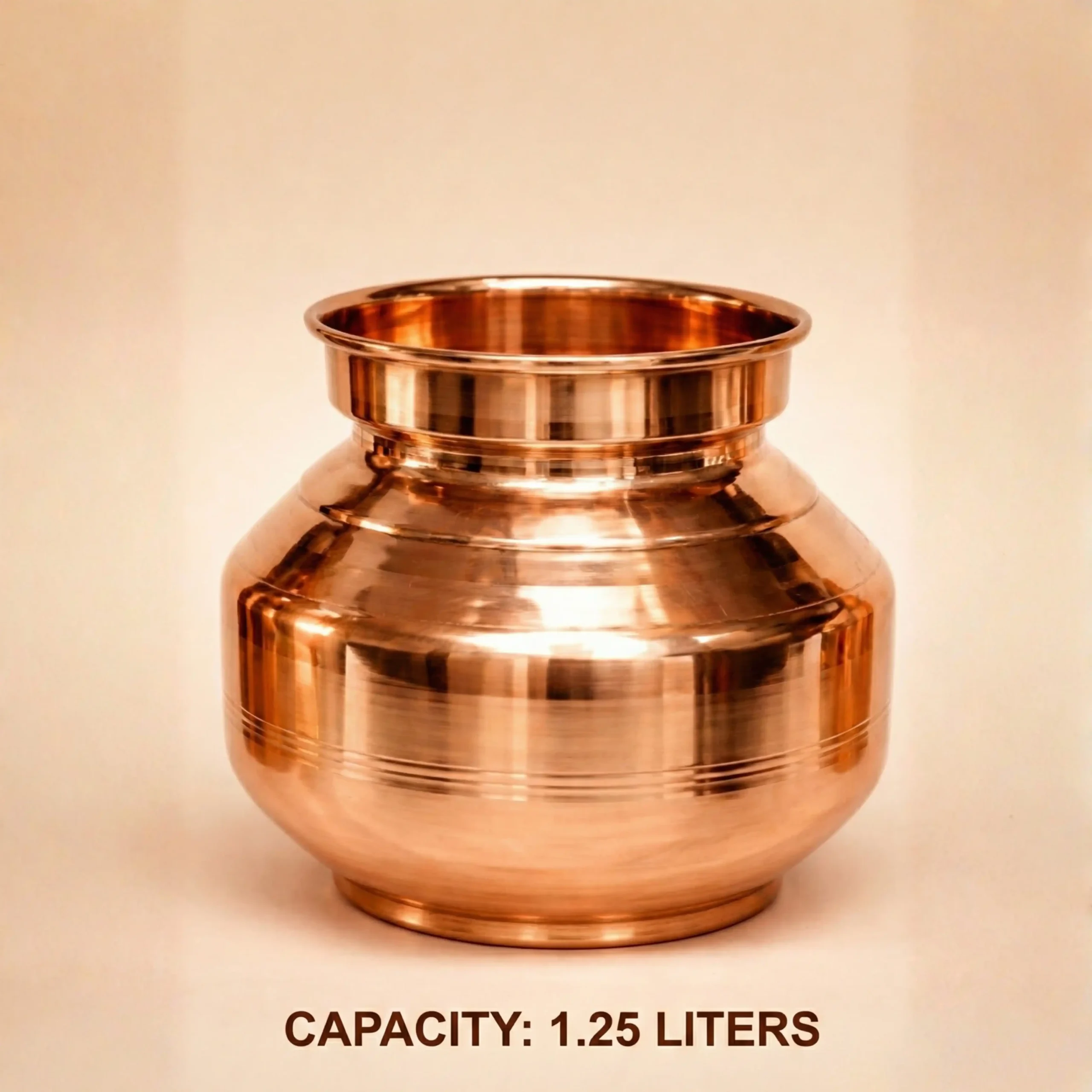 Premium pure copper kalash ideal for daily pooja rituals and abhishek ceremonies.