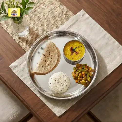 Engineered with versatility in mind, this set is ideal for serving complete, authentic Indian meals. The expansive surface area provides ample space for a full Thali-style presentation, comfortably accommodating roti, sabzi, rice, dal, salads, and desserts. The thoughtfully raised edges (beaded rims) are a standout feature, effectively preventing gravies from spilling and keeping your food neatly contained for a mess-free dining experience.