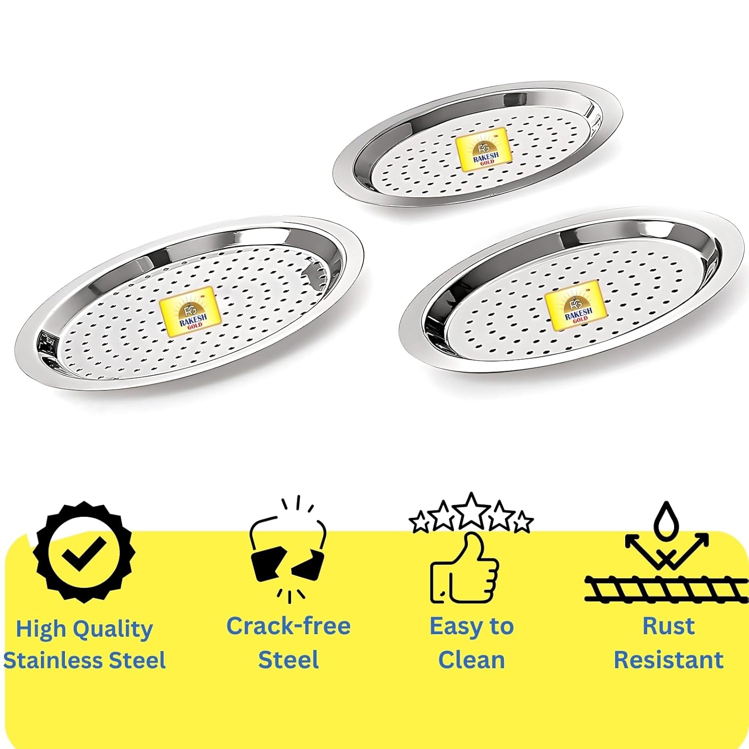 Rakesh Gold’s stainless steel heavy gauge lids are the perfect addition to your kitchen. These multi-use lids are crafted from high-quality, food-grade stainless steel that is mirror polished for a sleek look. They are easy to clean and dishwasher safe, ensuring convenience and durability. With a range of sizes available, these lids can fit various utensils like topes, pans, tapeli, kadai, pots, and patila, making them versatile for all your cooking needs. Enjoy a year of warranty with your purchase, giving you peace of mind. Upgrade your kitchen with these stylish and practical lids from Rakesh Gold.