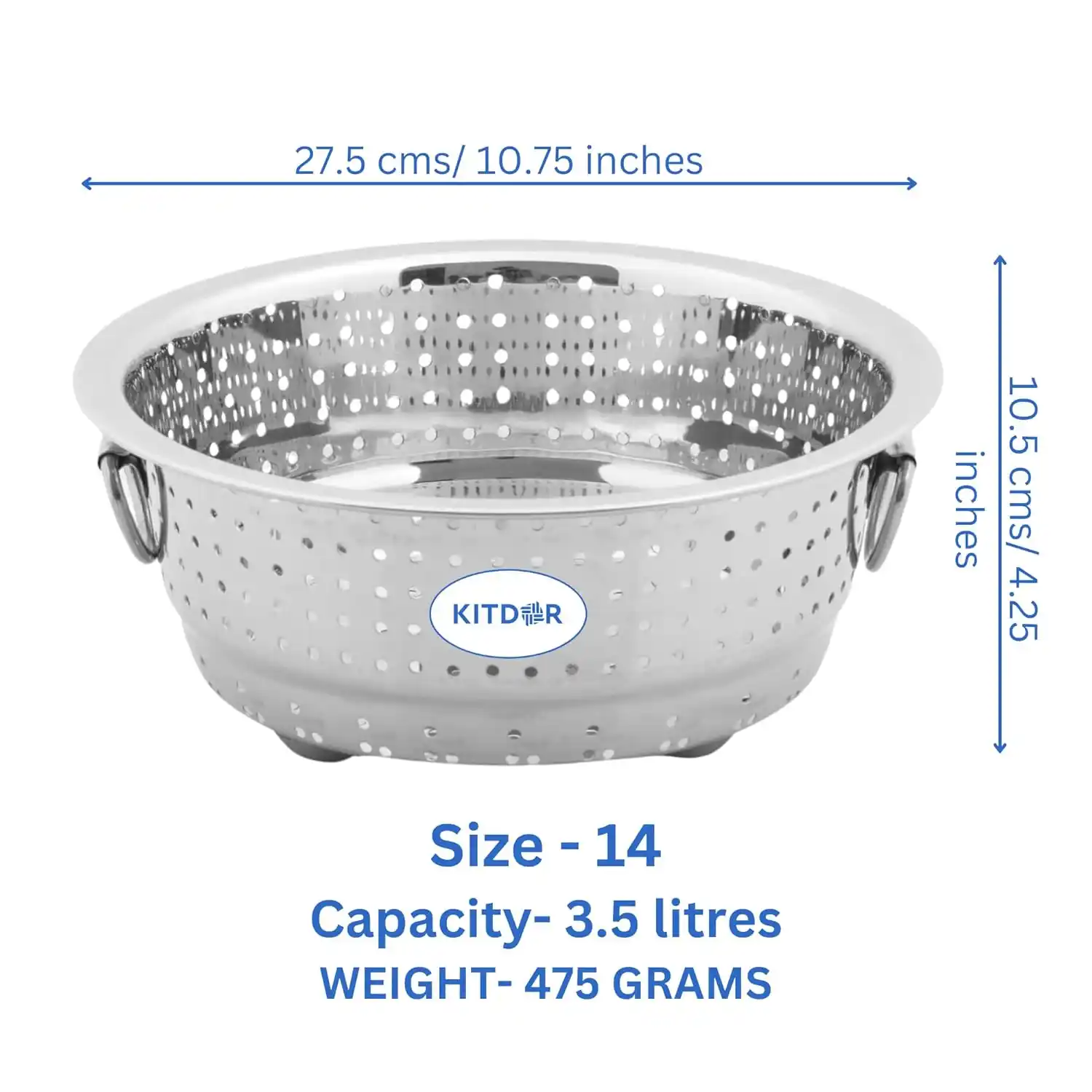 • Elevated Resting Stand: Featuring a sturdy, built-in base ring, this colander sits securely on your countertop or sink floor. It keeps your food elevated and away from contaminated surfaces, allowing for hands-free, hygienic draining.