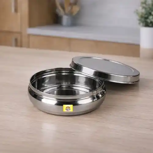 We crafted this container from high-grade, food-safe stainless steel. Consequently, your food remains free from harmful chemicals that plastics often contain. The robust steel body resists rust and withstands the rigors of daily use without denting or losing shape. Furthermore, the non-reactive metal preserves the natural taste and nutritional value of your meals, whether you store hot rotis or cold leftovers. You can browse our full range of Stainless Steel Kitchenware here.